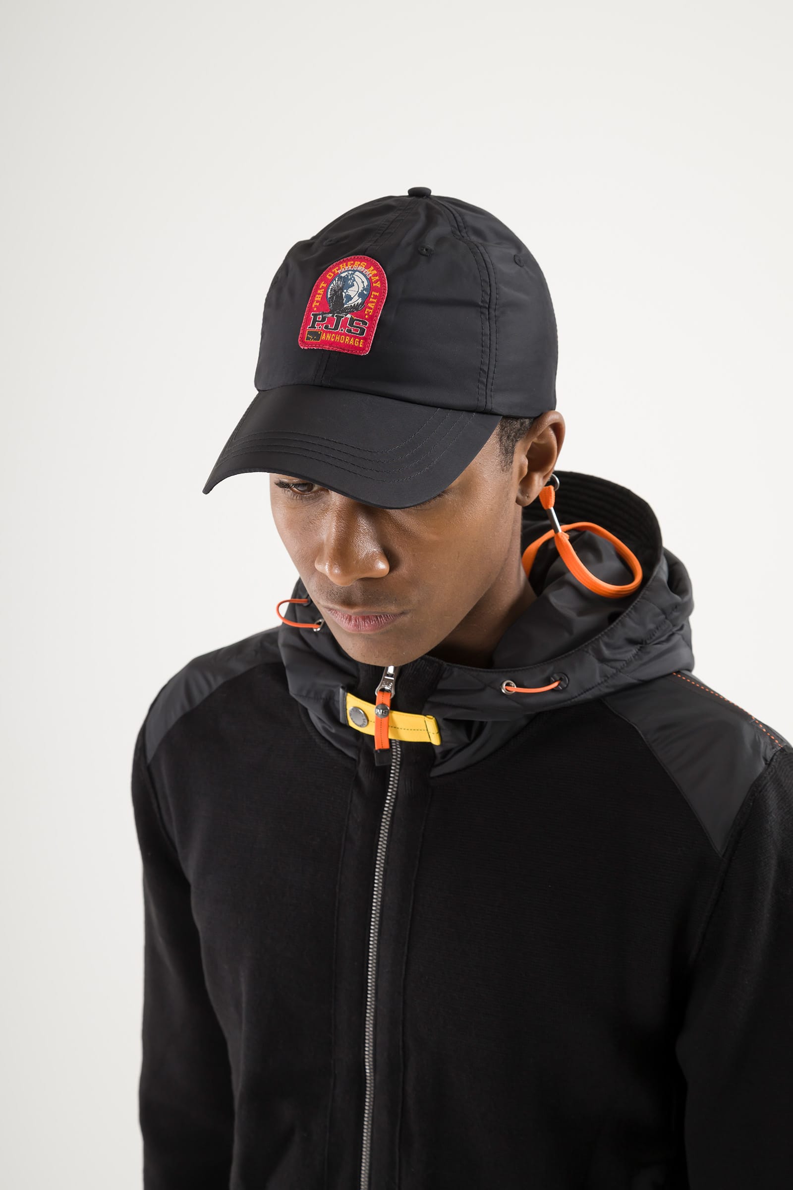 • PJS-print op de achterkant en iconische PJS-patch op de voorkant. Oranje banddetail met PJS-klinknagel om pet niet te verliezen. Ventilatiegaatjes en afneembare stormband. Verstelbare iconische gele elastische band aan achterzijde.